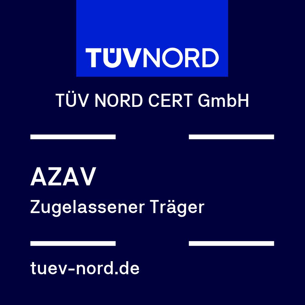 „Wir sind AZAV-zertifizierter Bildungsträger ausgezeichnet vom TÜV Nord.